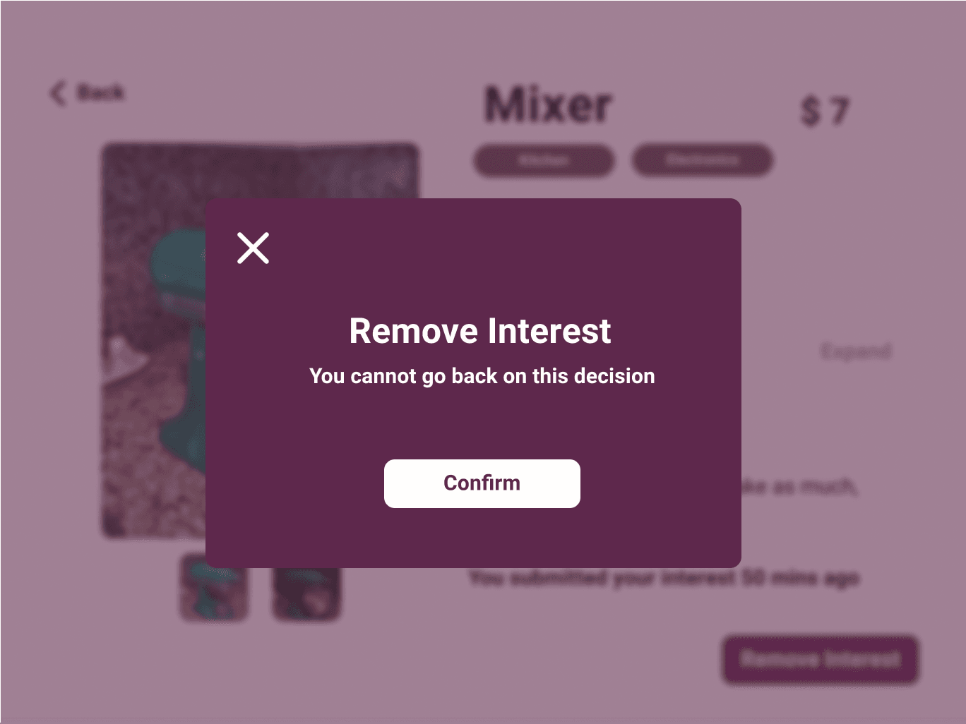 Confusion Around Interested button: Users were unsure who they are contacting, how to reach out to the seller, and what steps to take next. This caused uncertainty in how to express interest and proceed with a potential exchange.
