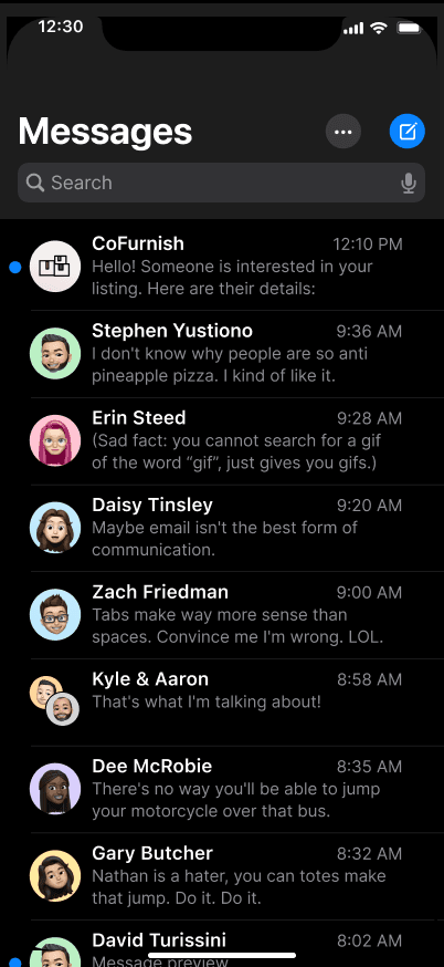 Example notifications from Cofurnish: welcoming users upon registration, notifying sellers when someone is interested in their listing, and reminding them to respond to potential buyers.