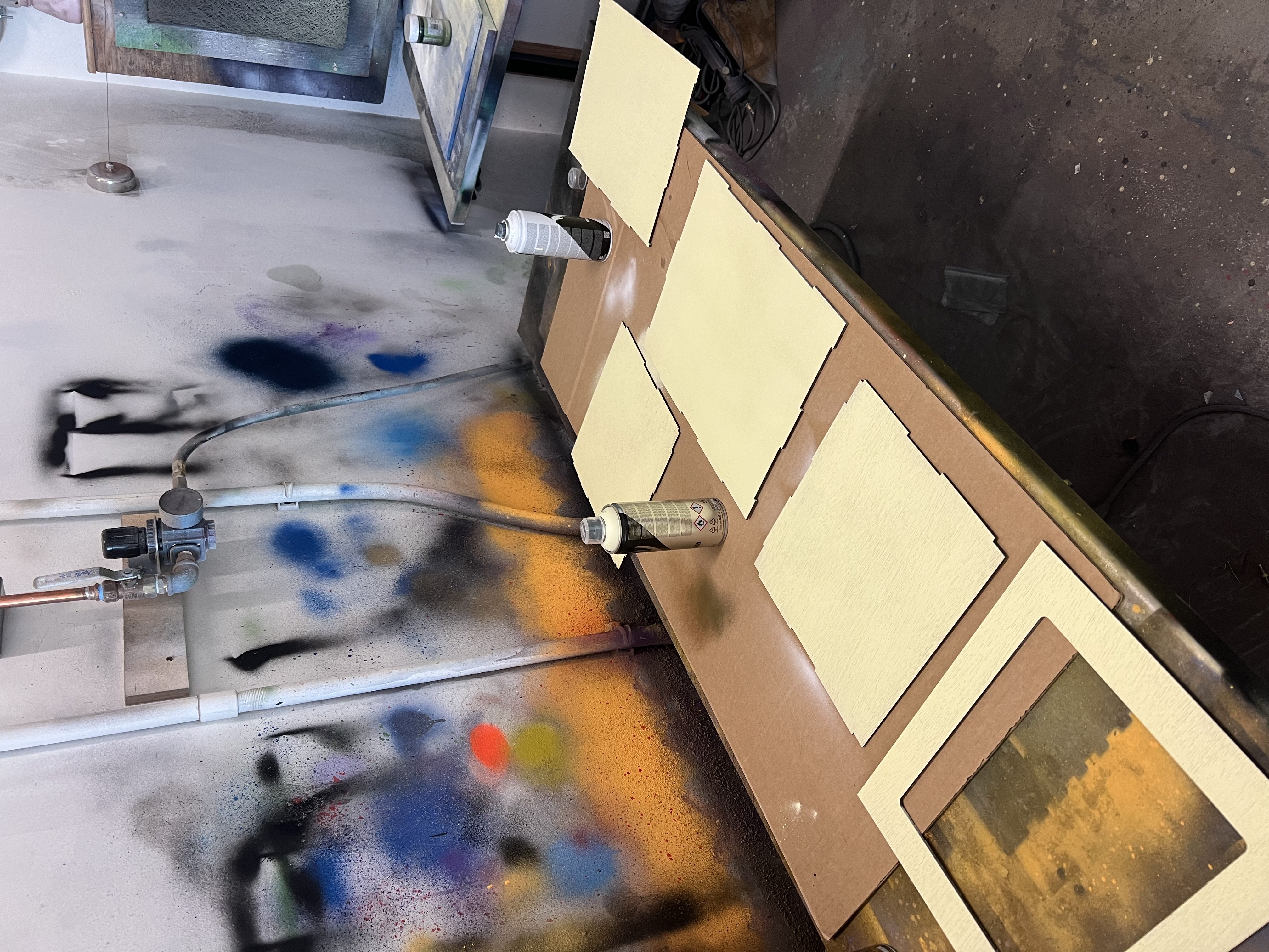 Spray painting each part of the kiosk and hand-painting the letters to complete the final visual design after assembly.