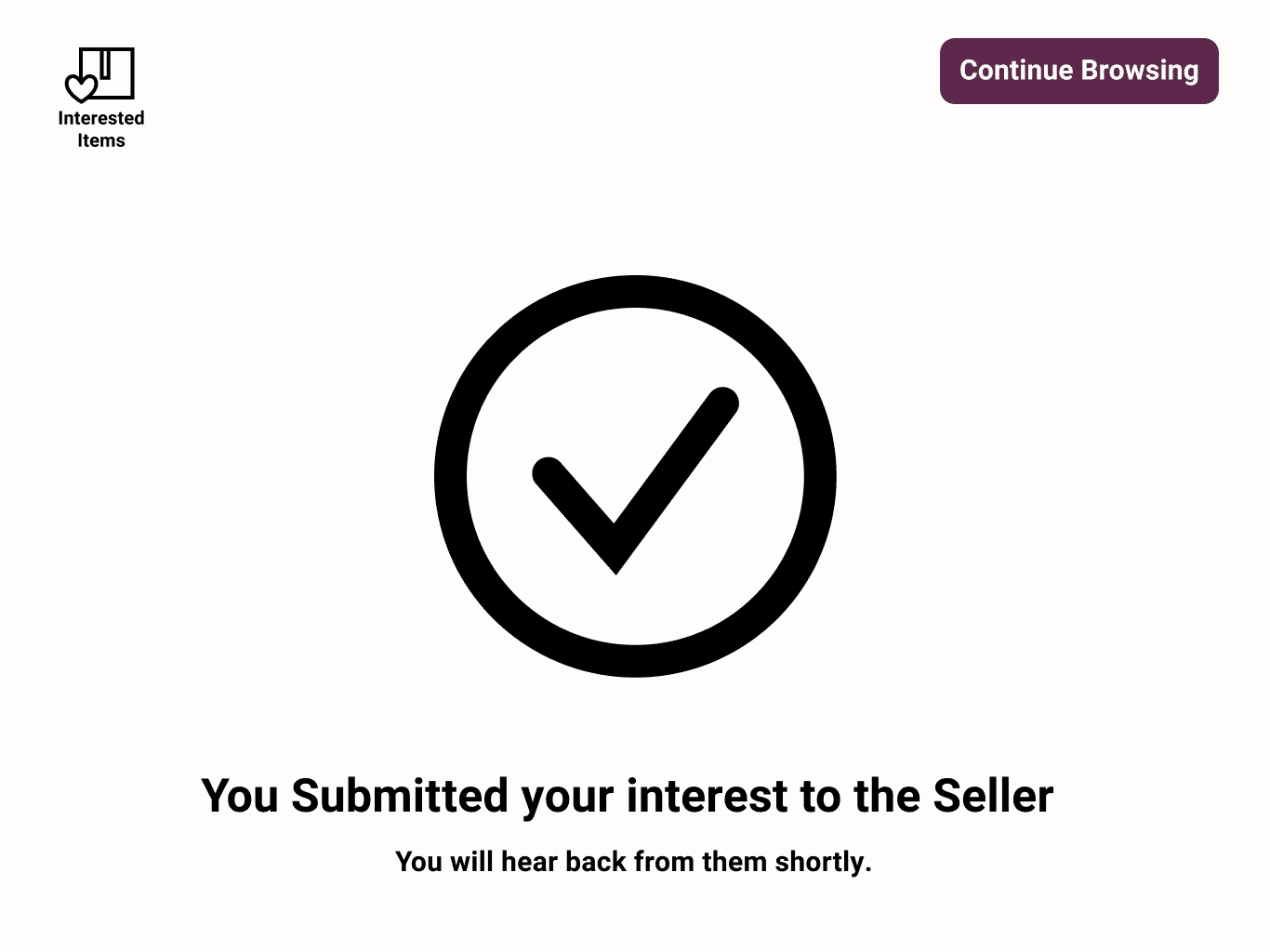 After browsing, users can mark an item as "interested," which sends a notification directly to the seller’s phone.