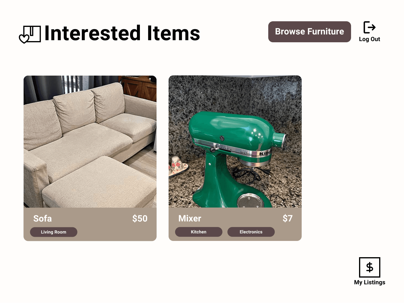 Based on user feedback, we found that terms like "My Items" and "Listings" were confusing because they didn’t clearly separate buying from selling. To address this, we introduced an "Interested Items" section for items the user wants to buy, while "My Listings" is now dedicated to items the user is selling. This change helps users easily differentiate between the two actions.