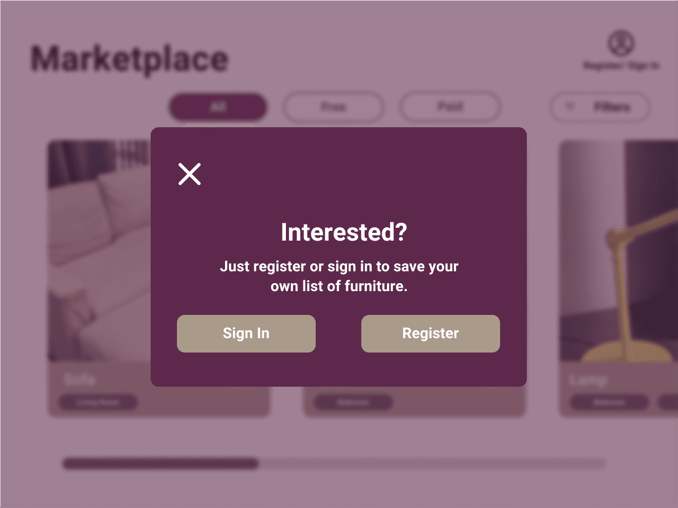 We implemented a guest flow where users can browse and explore the platform without logging in. However, features like viewing personal listings or saving items are only available after registration. This flow was designed to reduce confusion, making it clear when guests need to sign in or register to access additional services like selling or tracking interested items.